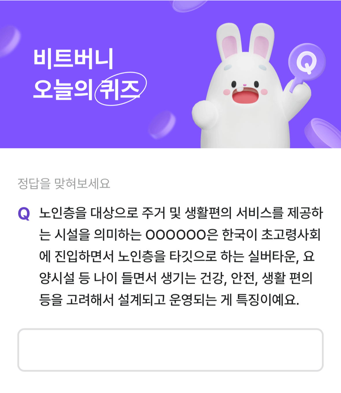 오늘의 비트버니 퀴즈 3월 31일 정답은 '시니어하우징